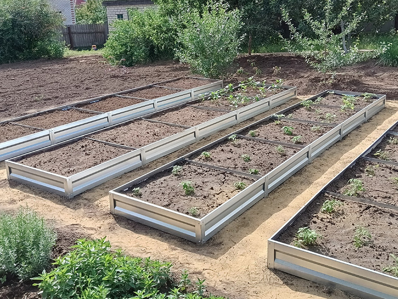 Посмотрите, как выглядят грядки и клумбы на участках.
